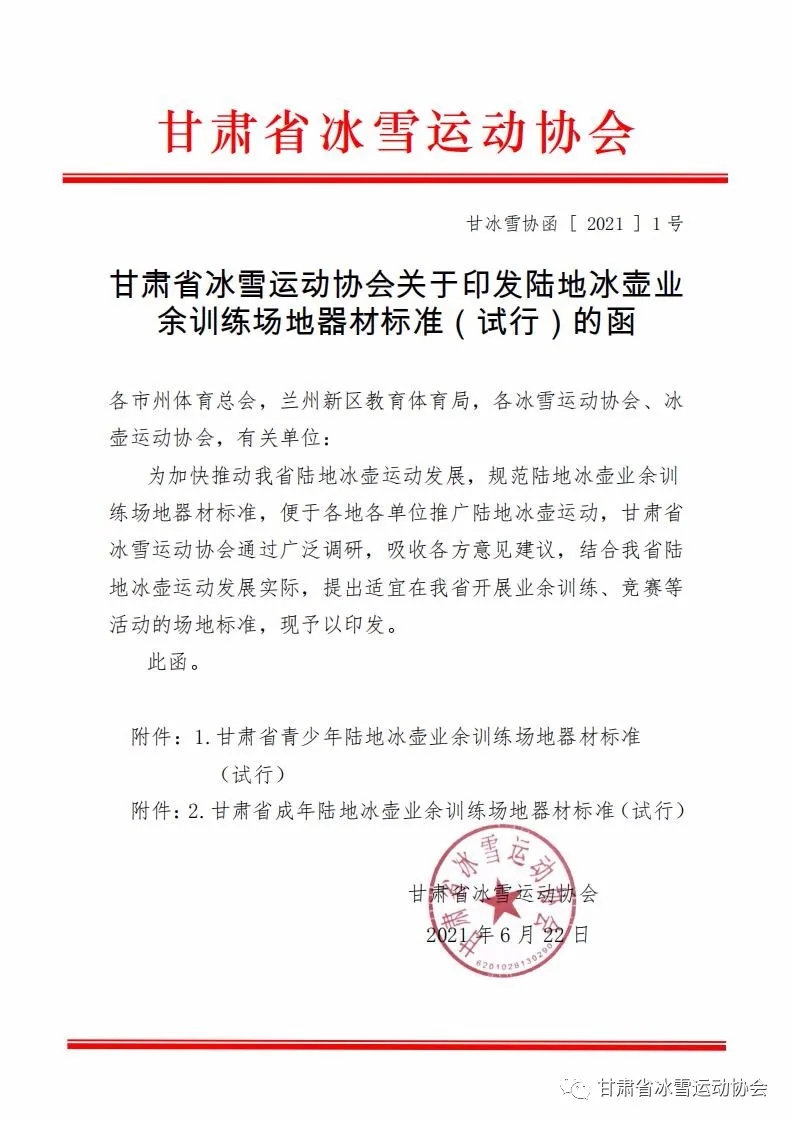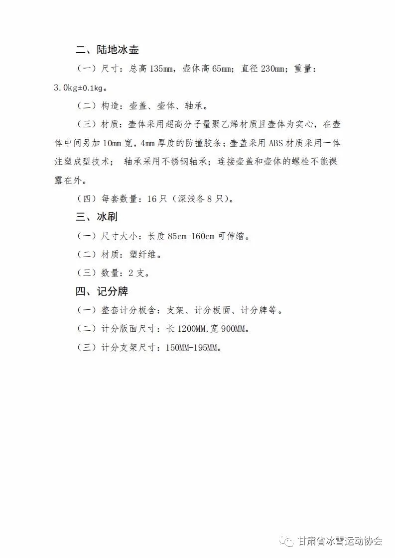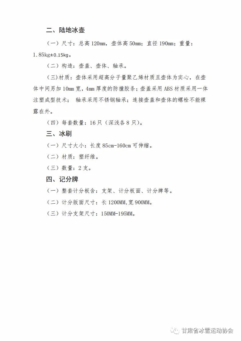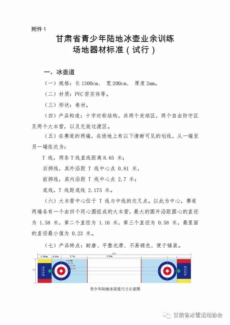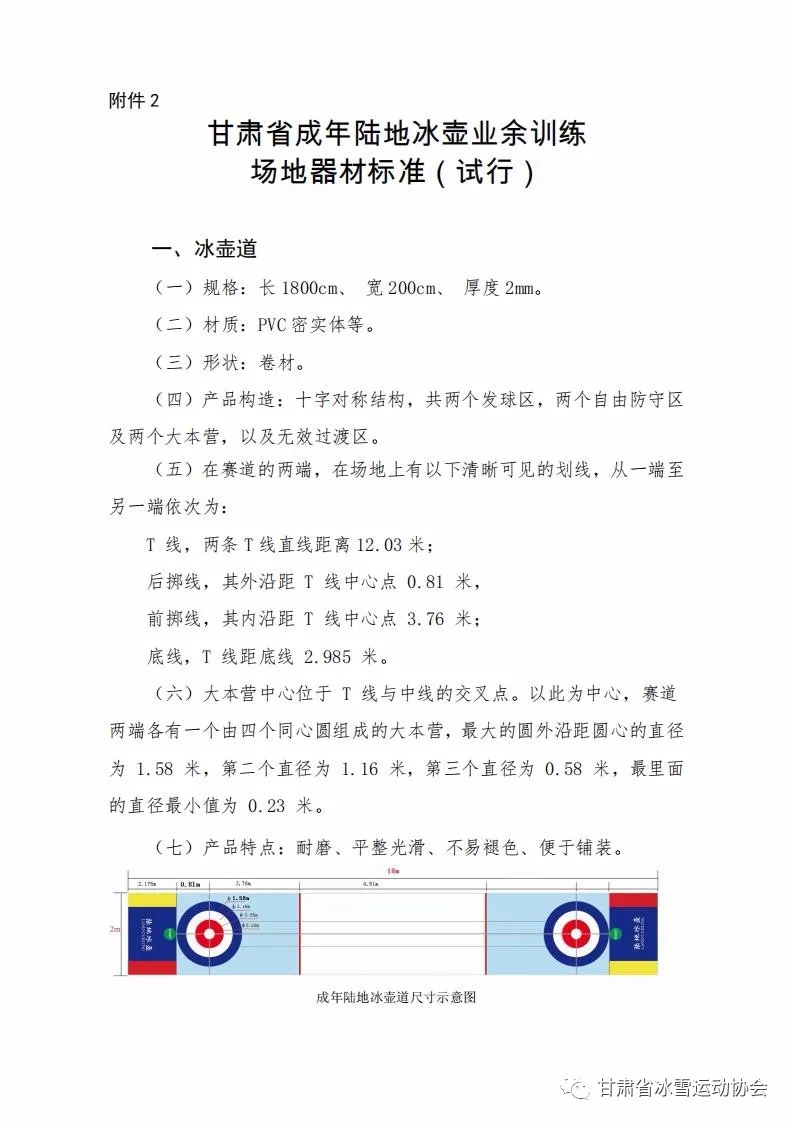 甘肃省冰雪运动协会关于印发陆地冰壶业 余训练场地器材标准(试行)的函